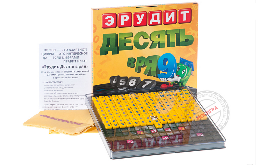 Вместо лирики и двусмысленности слов — четкие, совершенные, безупречные цифры: таков девиз нового «Эрудита: десять в ряд». Кажется, что может быть проще, чем расставить числа в одно за другим по возрастанию — но все меняется, когда приходят соперники, так и норовящие помешать вашему ряду, а учитывать приходится так много: и конкурирующие ряды, и бонусные позиции и даже странные значки, вроде «больше», «меньше» или «равно».