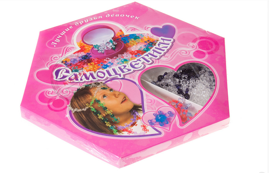 Разноцветные, переливающиеся и сверкающие на солнце детали в руках маленьких мастериц превращаются в самые разнообразные украшения – колье, бусы, браслеты и даже удобные, сделанные точно в размер колечки. С этим набором «игра в модницу» окажется полезнее многих утомительных головоломок, а семейный бюджет сбережет многие тысячи, непотраченные на новые украшения для ветреных юных дев.