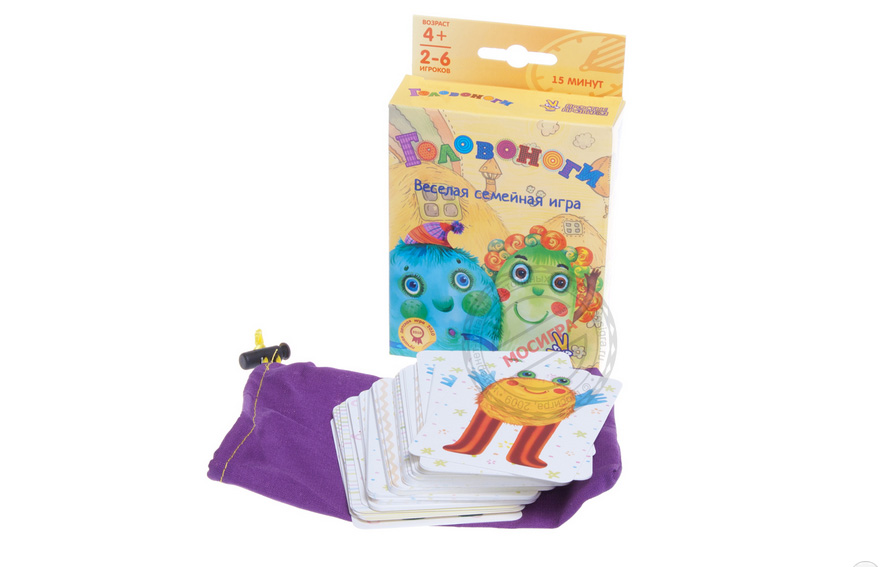 «Головоноги» — это весёлая детская игра, в которой есть 60 карт с разными странными (но при этом явно очень весёлыми) существами. Цель игры очень проста — нужно давать им имена и не ошибаться при их виде.