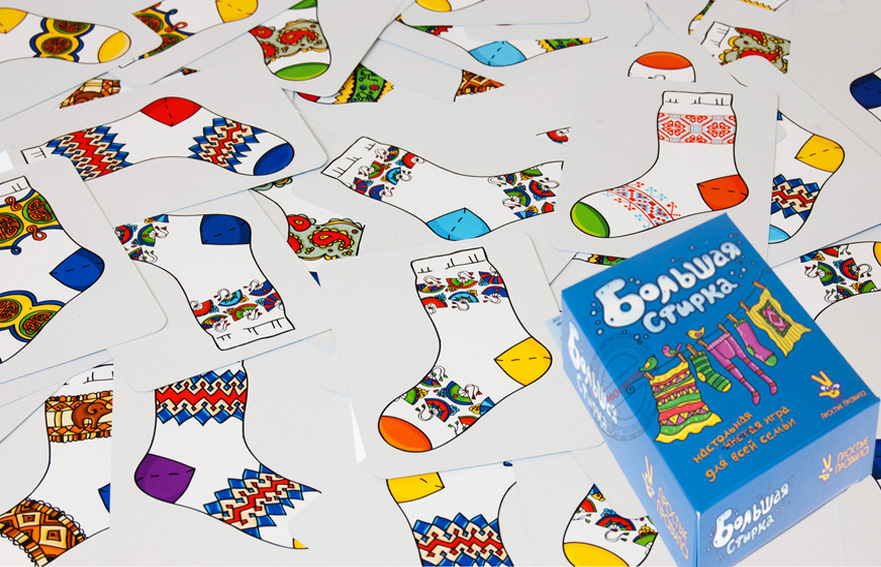 Тетя Алена - счастливая многодетная мама. Большая стирка носочков всегда была для нее нелегкой задачей, но когда в дом приезжают гости из разных стран, то тут уже без помощи не обойтись никак! И детки, и взрослые - все обожают разбирать и рассматривать разные национальные орнаменты. Не хотите и Вы к ним присоединиться? В коробке 70 карте изображениями носочков (всего 35 различных пар).