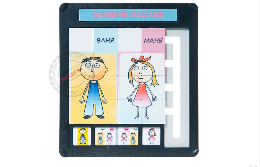Ваня и Маня — персонажи головоломки. Полюбуйтесь, какие они милые и забавные, потому что буквально через несколько секунд они превратятся в кучу паззлов, из которых вашему ребенку (скорее всего, дочке) придется вновь собрать прекрасную картинку. При этом двигать элементы мозаики придется по специальным прорезям, пользуясь пустыми окошечками. Так что, здесь есть над чем поразмыслить!