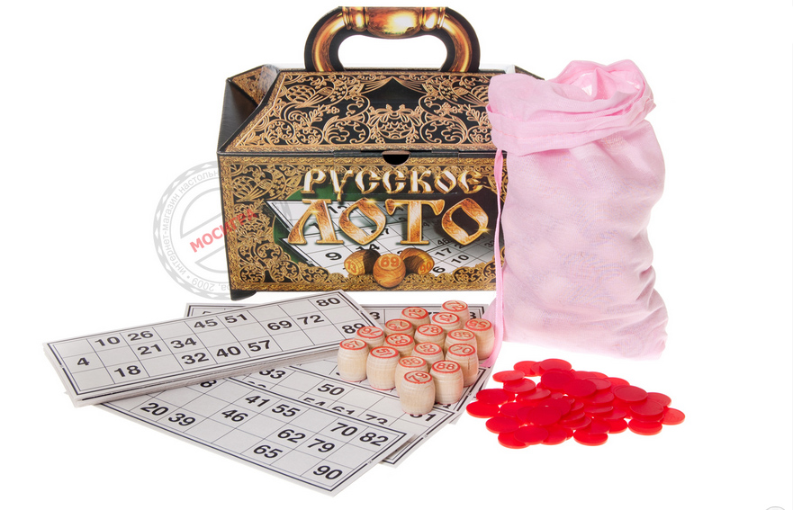 Лото, полностью соответствующее русским традициям и современными стандартами. В наборе вы найдёте всё для игры: мешочек с традиционным узором, 90 качественных деревянных бочонков, правила, 24 карточки, 170 жетонов для закрывания чисел на карточках, а также словарик со старинным жаргоном игрока в русское лото.