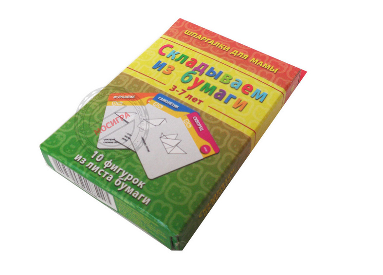 С помощью шпаргалок, рассказывающих, как сделать десять разных фигур, вы можете придумать сотню игр. Начните с простого складывания первой фигурки, отобрав карточки, пошагово иллюстрирующие процесс. Это слишком просто для вашего гения? Тогда выдавайте ему карточки, пропустив один шаг, но заранее показав, как должен выглядеть результат — пусть работает своей светлой головой. И это несложно? Выдавайте карточки через одну, и вы удивитесь, как разовьется у чада пространственное мышление и ловкость пальчиков.